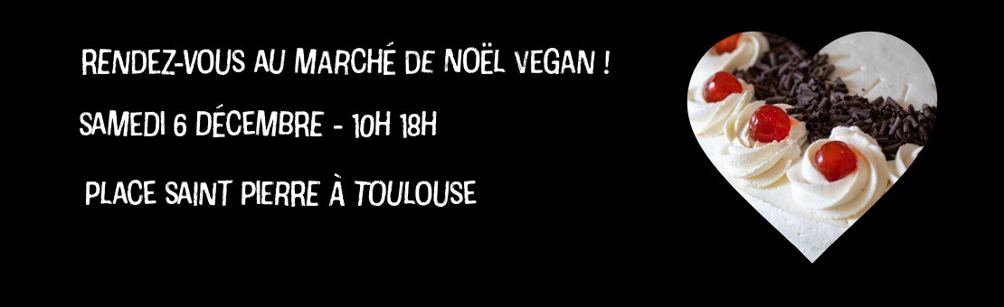 - le samedi 6 décembre : retrait place St Pierre sur notre stand, au marché de Noël éthique & vegan organisé par L214